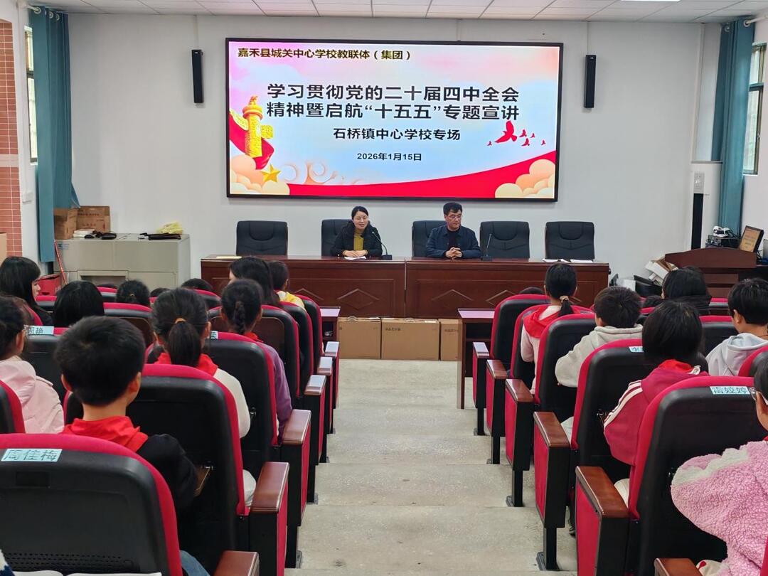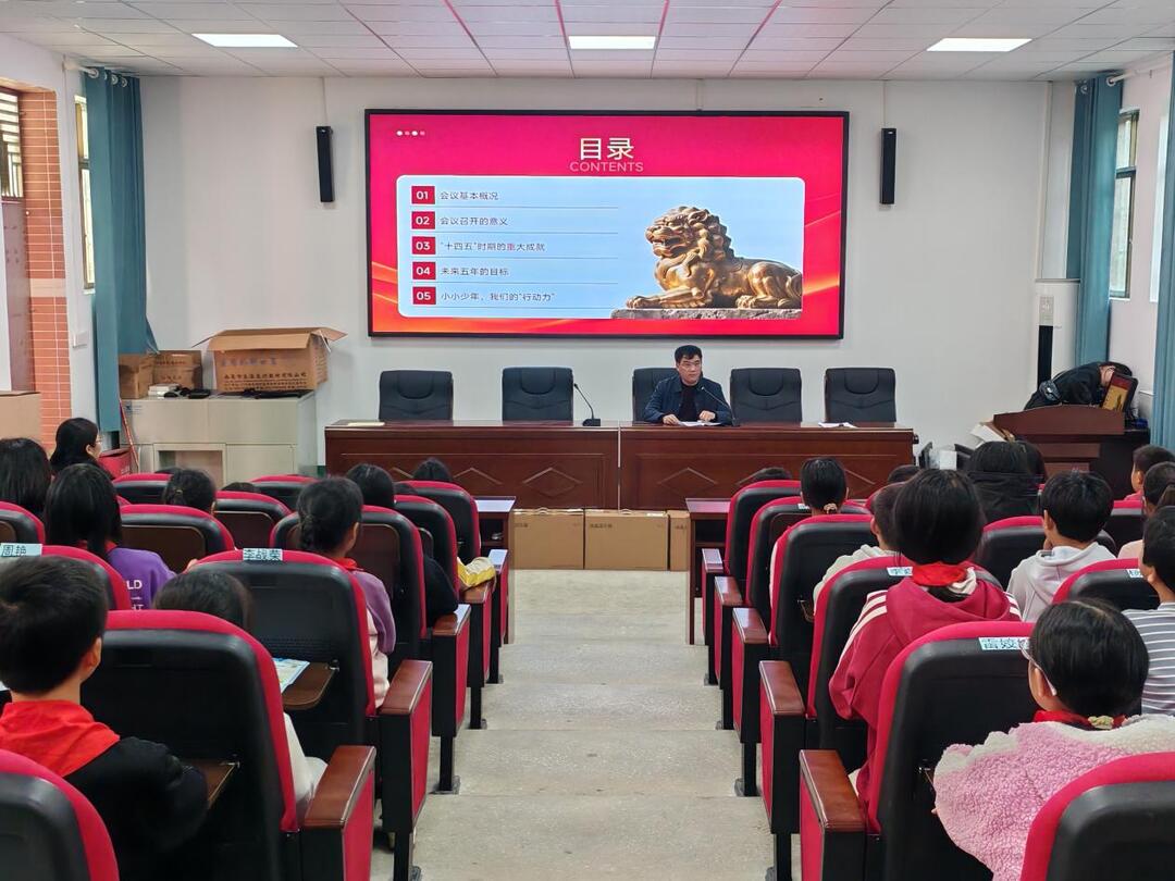 華聲在線1月19日訊(通訊員 謝凌娟 周平英 郭俊兵)為推動黨的二十屆四中全會精神在青少年群體中落地生根,引導(dǎo)學(xué)生錨定成長航向,1月15日下午,嘉禾縣城關(guān)中心學(xué)校教聯(lián)體(集團(tuán))石橋鎮(zhèn)中心學(xué)校在階梯教室舉辦專題宣講活動,五年級全體師生齊聚一堂,共赴這場“精神盛宴”。