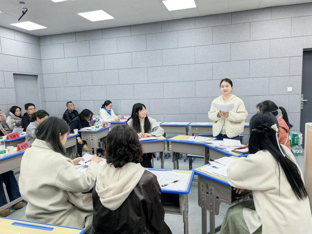 9時整,文科組與理科組比賽分別在特立樓錄播室和二樓西3教室同步展開。賽程設(shè)置“聚焦問題、研習(xí)共商、精品展示、評課議課、專家提問”五個環(huán)節(jié),各團(tuán)隊分工明確、配合默契?!熬劢箚栴}”環(huán)節(jié),團(tuán)隊直擊教學(xué)實踐中的難點與痛點,精準(zhǔn)闡述選題價值;“研習(xí)共商”環(huán)節(jié),圍繞課標(biāo)、學(xué)情與教學(xué)策略展開熱烈研討,逐步凝練成凝聚集體智慧的教學(xué)共案;“精品展示”環(huán)節(jié),主講教師以無生上課形式呈現(xiàn)匠心設(shè)計的精彩課堂;“評課議課”環(huán)節(jié),團(tuán)隊成員思維交鋒,既肯定亮點,亦坦誠建言;“專家提問”環(huán)節(jié),選手們從容對答,展現(xiàn)出深厚的專業(yè)素養(yǎng)與靈活的應(yīng)變能力。