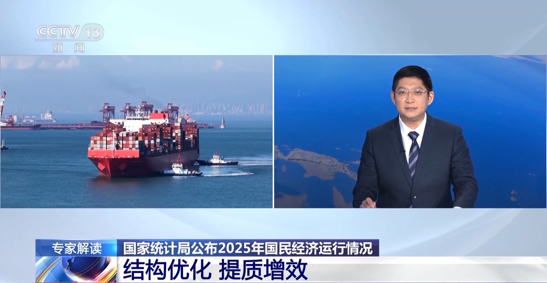 國家發(fā)展改革委國家信息中心研究員 魏琪嘉:我們看2025年整個經(jīng)濟運行數(shù)據(jù)反映出來的亮點,首先就是穩(wěn)中有進、向新向好。這份成績單的取得,比如說經(jīng)濟總量突破140萬億元大關(guān),保持了5%的經(jīng)濟增長速度,充分彰顯了我們超大規(guī)模經(jīng)濟體在發(fā)展過程當中的韌性和潛力。即便遇到風高浪急的挑戰(zhàn),但是外貿(mào)出口、國內(nèi)產(chǎn)業(yè)轉(zhuǎn)型升級調(diào)整的步伐都在堅定地向前邁進。