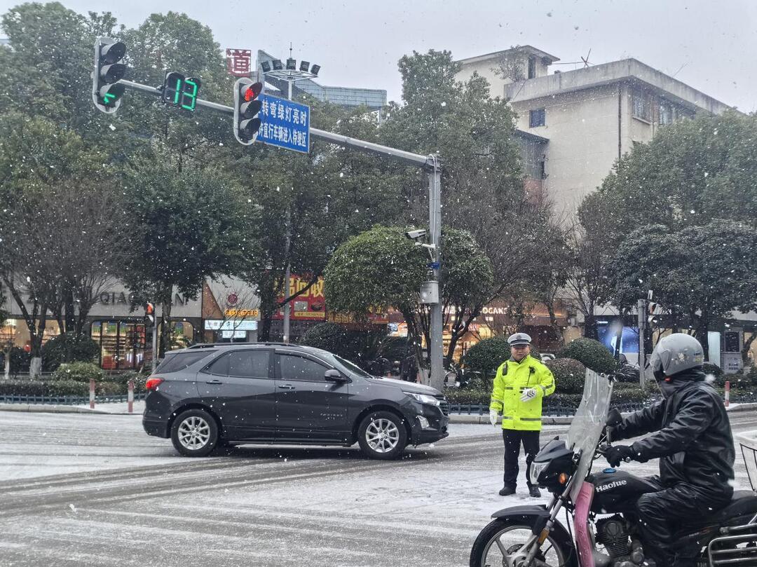 交警雪中指揮交通