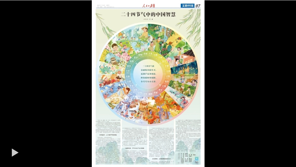 春雨驚春清谷天,夏滿芒夏暑相連,秋處露秋寒霜降,冬雪雪冬小大寒……耳熟能詳?shù)墓?jié)氣歌,串聯(lián)起時(shí)序變換、四季輪轉(zhuǎn)的韻律。自立春至大寒,二十四節(jié)氣滋養(yǎng)著一方水土的風(fēng)物,蘊(yùn)含著人與自然和諧共生的智慧。
