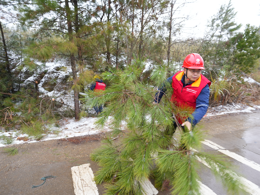 華聲在線1月21日訊(通訊員 孫琪)1月20日下午,風(fēng)雪中的岳陽縣長湖鄉(xiāng)洪橋村,國網(wǎng)岳陽縣供電公司新墻供電所所長龔紅文帶領(lǐng)所內(nèi)黨員及骨干員工,冒雪開展10千伏文范線線路特巡及通道治理。作為一名老黨員,他沖鋒在前,透過紛飛的雪片,始終緊盯著前方蜿蜒進入密林的供電線路。