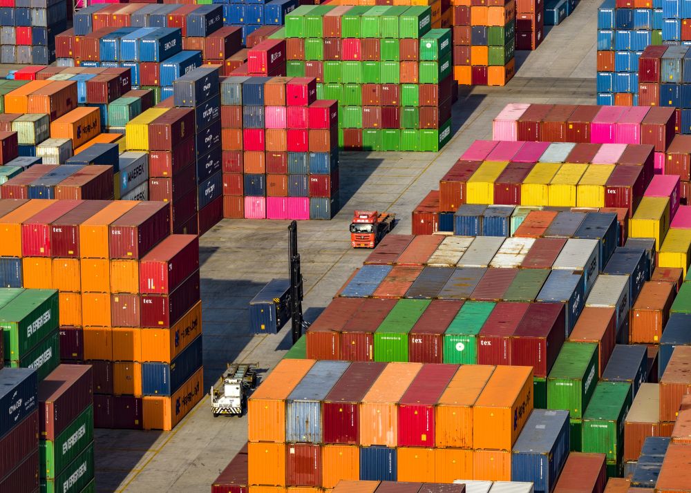 ??2025年12月8日拍攝的南京港龍?zhí)陡蹍^(qū)集裝箱堆場(無人機(jī)照片)。新華社發(fā)(辛一攝)